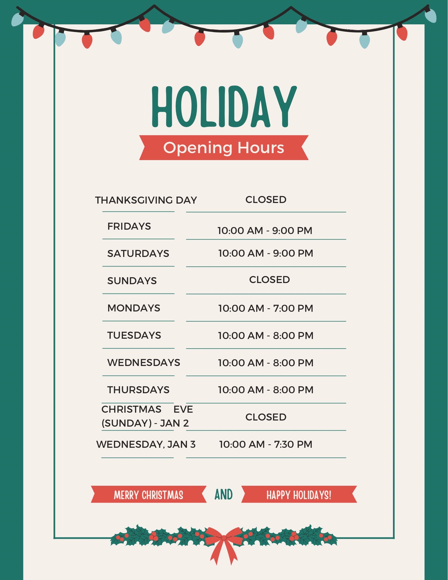 - * Holiday